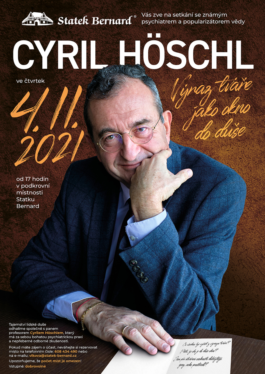 Co všechno se dá vyčíst z tváře? Platí, že oko je do duše okno? Přijďte si poslechnout, jak na tyto a mnoho dalších otázek odpoví odborník na slovo vzatý - známý  psychiatr a popularizátor vědy, pan profesor Cyril Höschl.