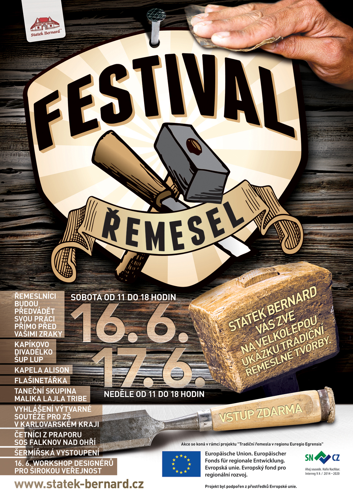 Hlavní atrakcí Festivalu je velkolepá ukázka řemeslné tvorby – sjedou se k nám řemeslníci z celého kraje a také z Německa, aby nám předvedli krásu tradiční rukodělné práce. Řemeslníkům můžete nakukovat pod ruce, ale u mnohých z nich si můžete práci také sami vyzkoušet. Na Festivalu budou k vidění například tato řemesla: truhlář, řezbář, platnéř, textilní tvorba, různé podoby výtvarné tvorby – jako je powertex nebo karikatura, design, výroba vonných svící a pekařství.