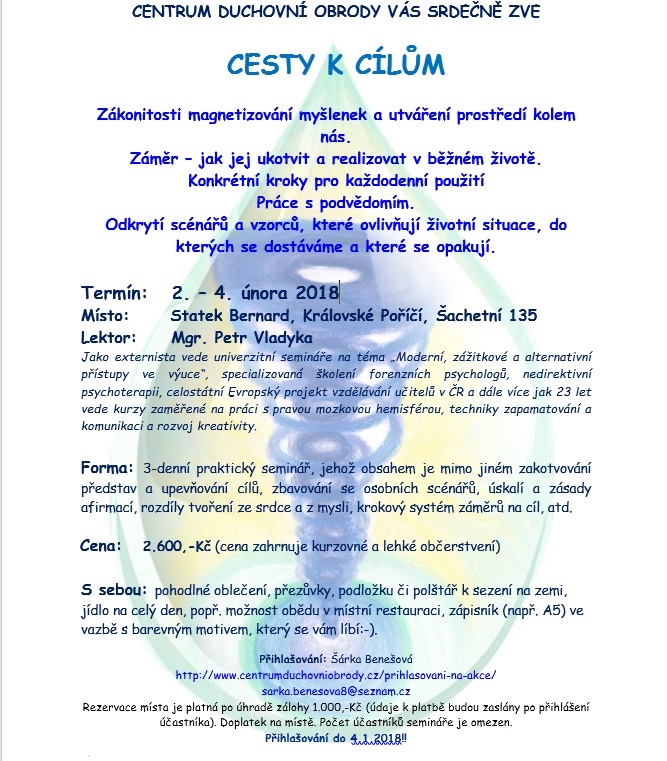 Na záčátku roku 2018 bude na Statku Bernard série přednášek, kterou pořádá Centrum duchovní obrody.
