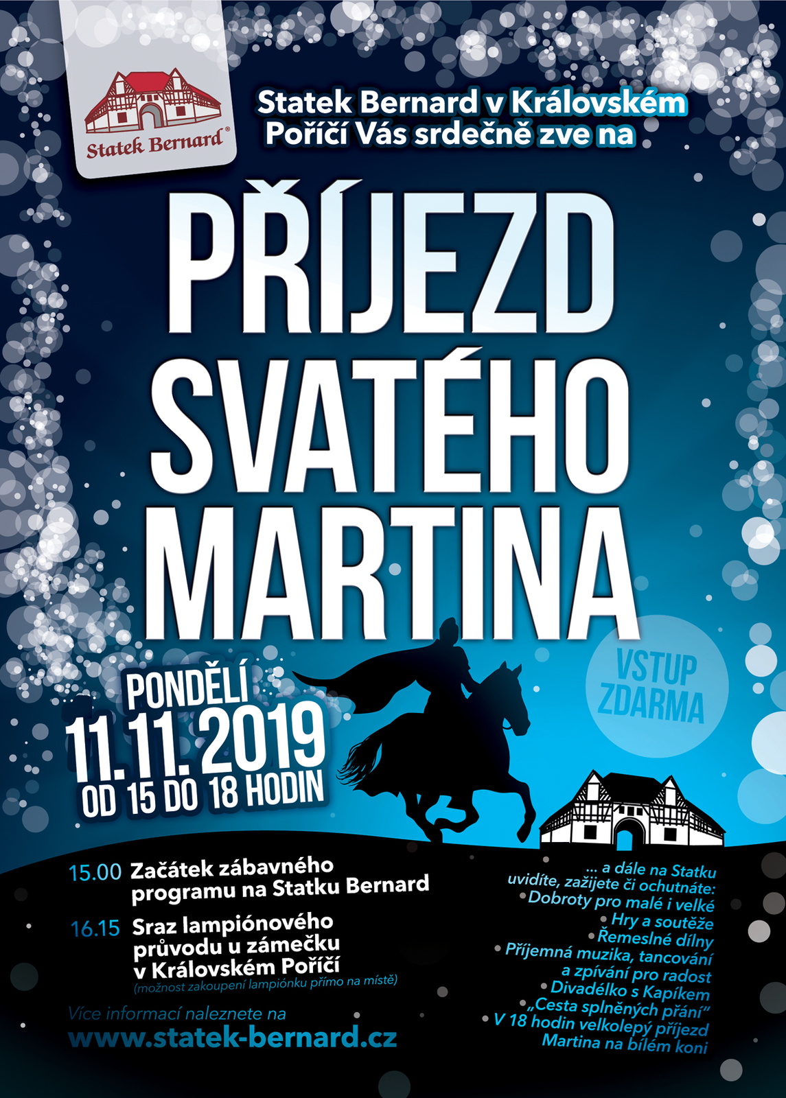 Chystáme lampiónkový průvod od poříčského zámečku směrem na Statek, nezapomeneme na tajemnou Cestu splněných přání a to nejdůležitější nakonec! Přijede letos Martin na bílém koni? My věříme, že ano!
