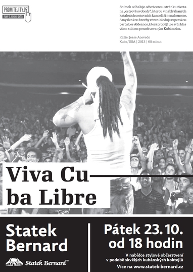 Jak se žije a rapuje na Kubě? Co v katalozích cestovních kanceláří nenalezneme? Muzikou se šíří idea svobody, za muziku může člověk skončit ve vězení. Odvrácená stránka prosluněného života na Kubě. Přijďte se na Statek Bernard podívat na dokumentární film Viva Cuba Libre, který byl úspěšně promítán v rámci festivalu Jeden svět. Pojďme společně přemýšlet o palčivých tématech, pojďme je rozebírat u skvělých kubánských koktejlů. Viva Kuba Libre to je večer poznání i dobré zábavy na Statku Bernard – 23. 10 od 18:00 hodin.